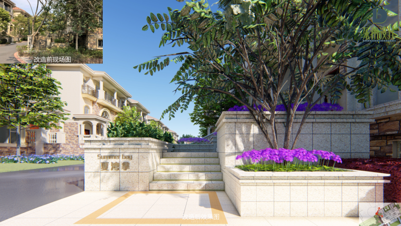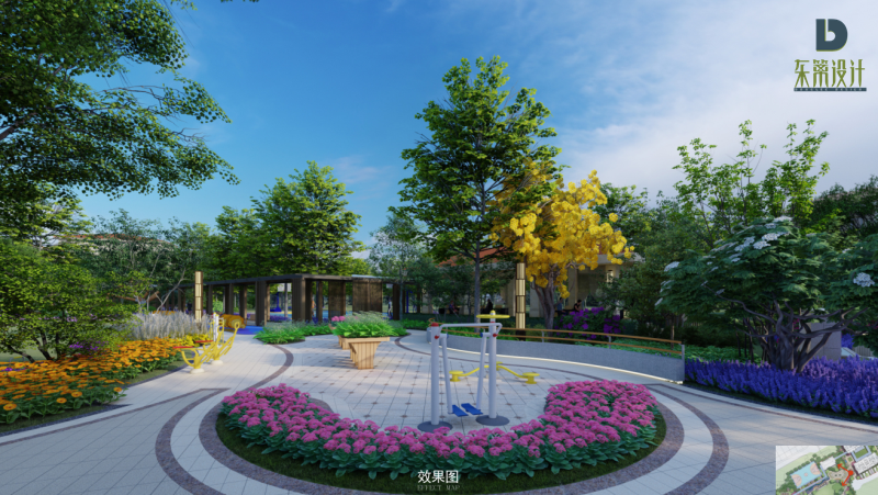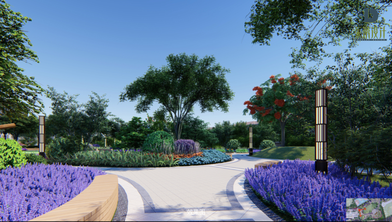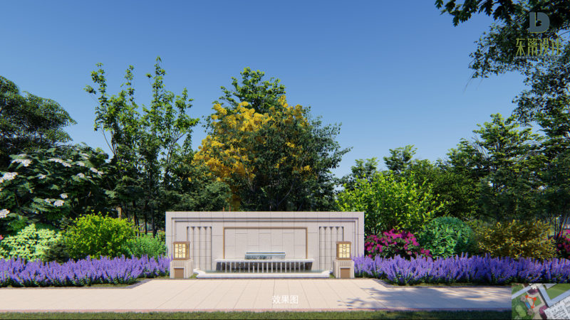 尊重自然規律,因地制宜,適地適樹。本項目注重原色的提煉:從山水中提取園路的曲線形式;從田園中提取園建的細節元素;從建筑中提取硬質元素色彩。