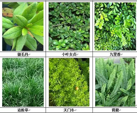 (2)陰生環(huán)境適用植物:光照條件較差的地帶,適宜選擇喜陰、中性和耐陰的植物種類。