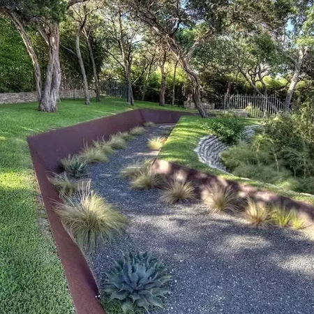 本叫枯山水,有禪意,節水,低維護,方便介入。有時,旱溪也可以做河底,甚至