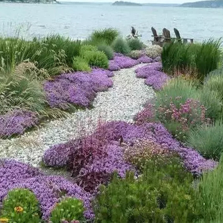 植物的營造在意境上表達出溪水的景觀。在人造溪的時候,先是素土夯實,再碎石