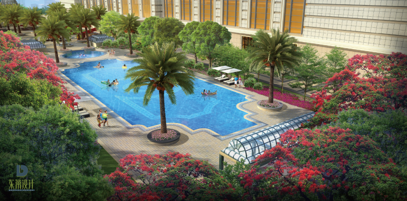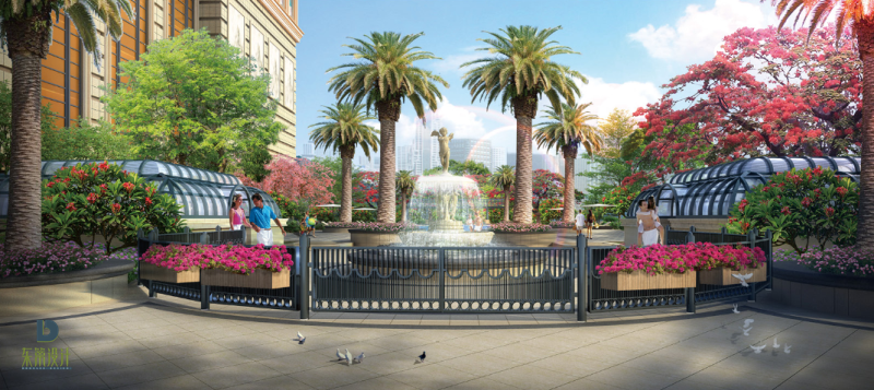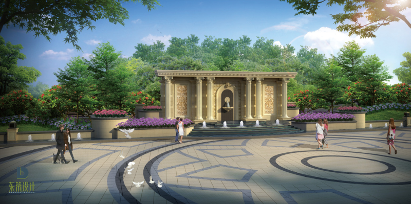 景觀設(shè)計(jì)中,定位為法式園林風(fēng)情,注重空間營(yíng)造。通過水景、鋪裝、小品體現(xiàn)高貴同時(shí),根據(jù)以人為本的原則,著重體現(xiàn)異域風(fēng)情。