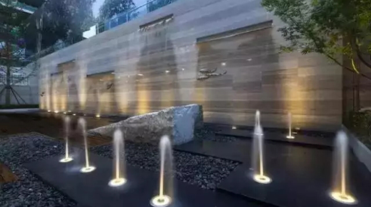 雕塑,抑或其他山水主題元素,融入景墻后,都能營造出自然山水的意趣。